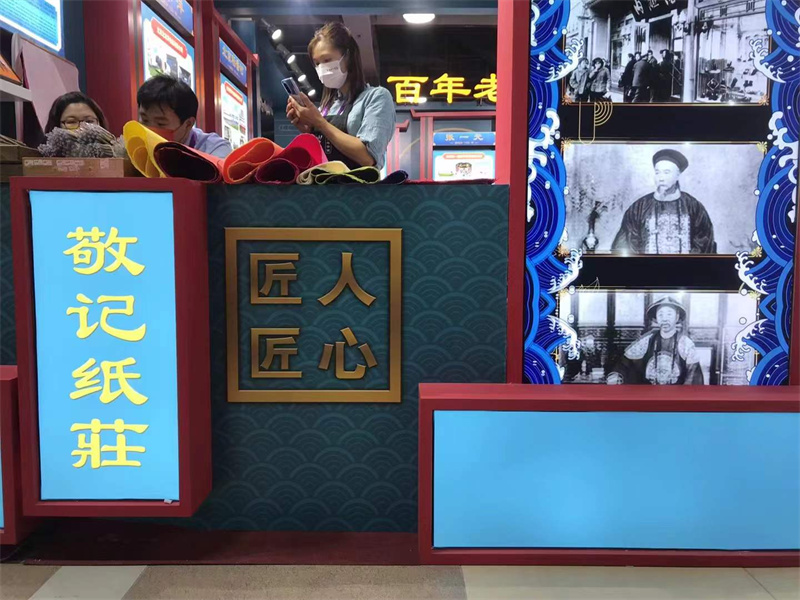 人文交流區(qū)E2區(qū)熱鬧非凡,現(xiàn)場(chǎng)了解傳統(tǒng)手工紙制作技藝。