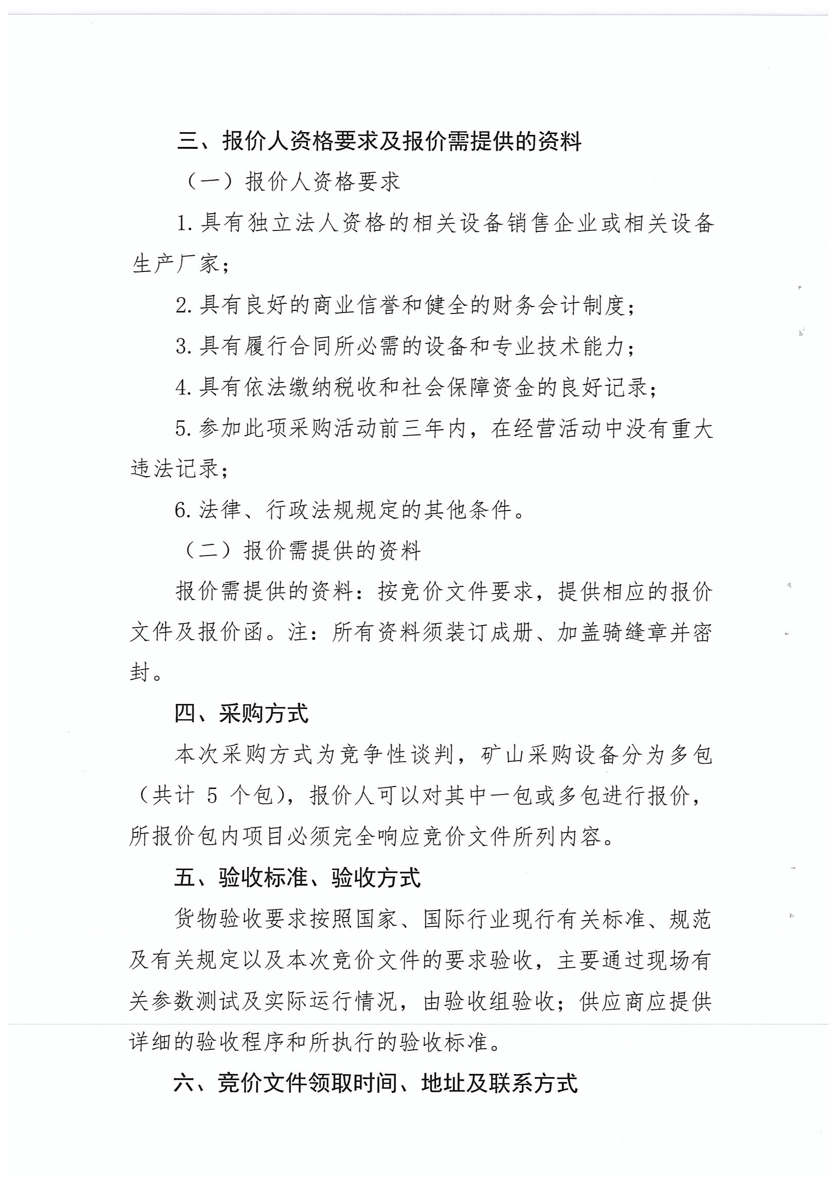 礦山開采設(shè)備競(jìng)爭(zhēng)性談判采購(gòu)公告