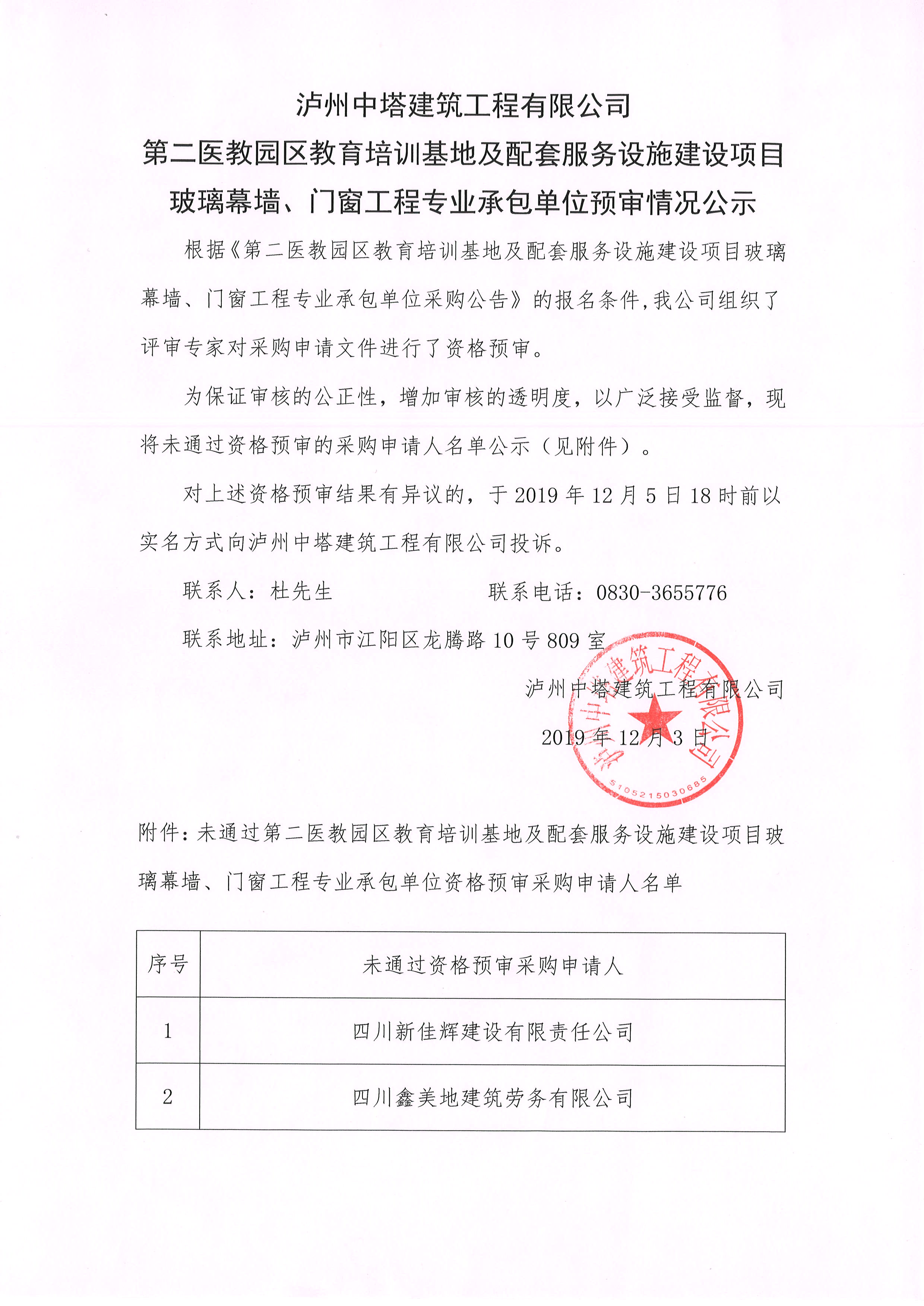 第二醫(yī)教園區(qū)教育培訓(xùn)基地及配套服務(wù)設(shè)施建設(shè)項目玻璃幕墻、門窗工程專業(yè)承包單位預(yù)審情況公示